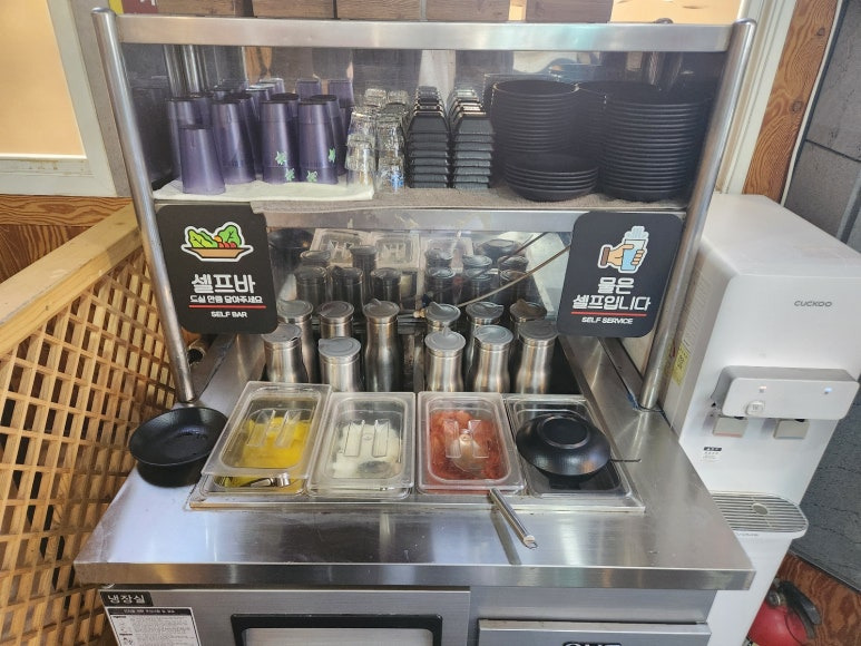 물과 반찬은 셀프로 가져다 먹으면 되고